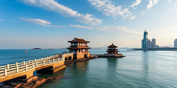 早餐后;游覽市內景點:青島標志性建筑、十大景觀之首—棧橋(觀回瀾閣),領略“長虹遠引、飛閣回瀾”之美景;參觀【信號山景區】(含,約40分鐘)【贈送乘船海上觀光】(含,約30分鐘)乘船遠觀四季如春-小青島、遠觀海軍博物館、魯迅公園、小魚山、圣彌愛爾大教堂;奧運會帆船主辦場地——浮山灣;車游萬國建筑博覽群—八大觀;下午赴青島火車站乘D342次(17:24—22:36)二等座)或其它動車次返北京南站結束愉快旅程!【自愿自理項目】:海底世界(130元/人約60-90分鐘)、青島電視觀光塔(50元/人約40分鐘)。
