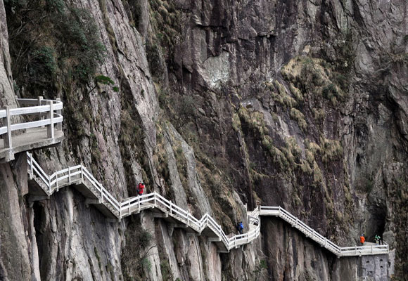 上得船來,我們一面對著煙雨朦朧的兩岸不停的按動快門,一面聽三哥講有關連江、歙縣的古老傳說。他講了好多,比如練江--新安江一頭一尾出了兩個領袖,即江頭的胡錦濤,江尾的江澤民。但我卻對“歙”之的來歷,記得最清楚,很有意思。原來這個字還與唐代大詩人李白有關。話說當年李白在京城參加殿試,認識一位歙縣的書生,當時此地還不叫“歙縣”哦。后來,李白云游到了